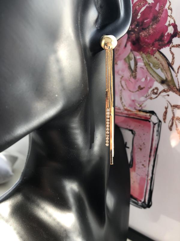 Серьги медицинский сплав с кристаллами. Покрытие стойкое. Длина 8,4 см . Отправка в день заказа.