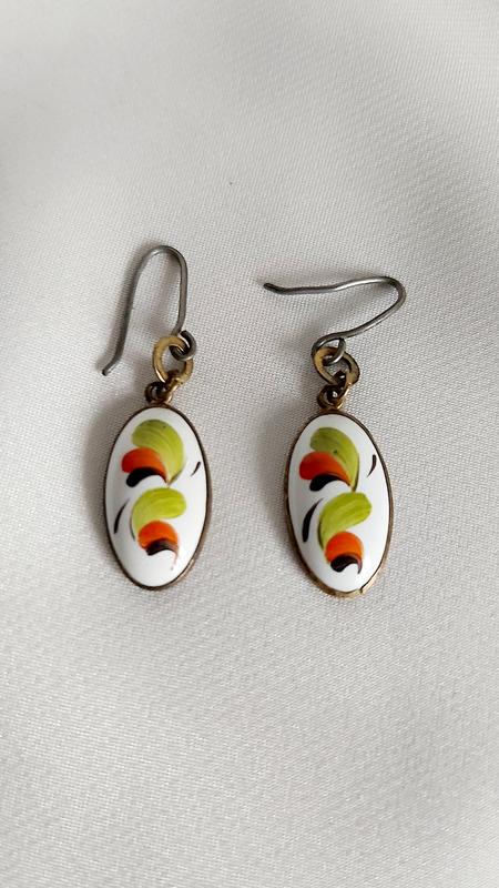 Винтажные серьги финифть редкие коллекционные эмаль