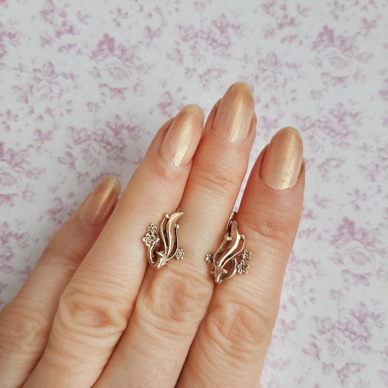 Серьги нежные золото серебро миниатюр клеймо звезда проба позолот винтаж цветы серёжк
