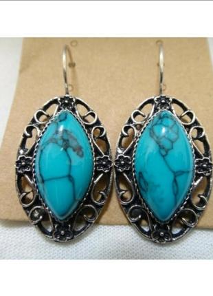 Сережки з бірюзи, 20мм, метал мельхіор