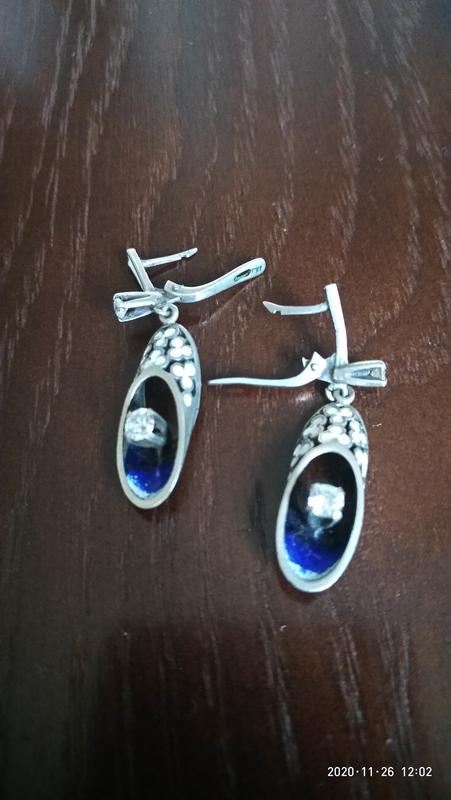 Винтажные серьги, серебро, фианиты, эмаль, лазурь. Редкость. Длина серьг 4,5 см. Состояние идеальное.