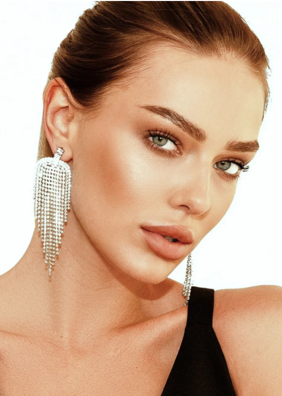 Серьги — важная часть вечернего образа. Модель из легкого бижутерного сплава инкрустирована мерцающими кристаллами. От небольшой прямоугольной основы спускается каскад цепочек разной длины. Цвет: серебристый Материал: бижутерный сплав Состав: медь 40% никель 40% хром 20%