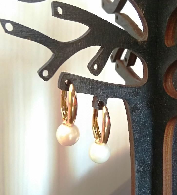 Материал: мед.золото. Цвет покрытия: позолота. Вставка: искусственный жемчуг. Размер: 2,3 см. Застежка: английский. Виробник: Xuping.