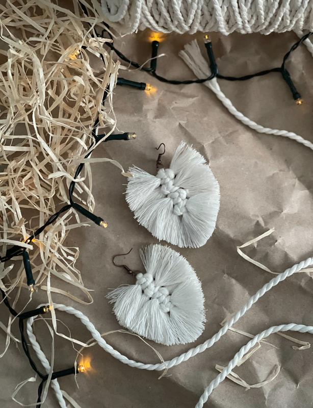 Сережки-пір'ячка в техніці макраме Можуть бути з срібною або бронзовою фурнітурою