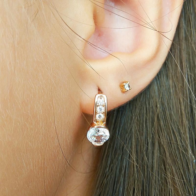 Описание Материал: мед.золото. Цвет покрытия: позолота. Вставка: циркони. Размер: 1,4 см. Застежка: английский. Виробник: Xuping.