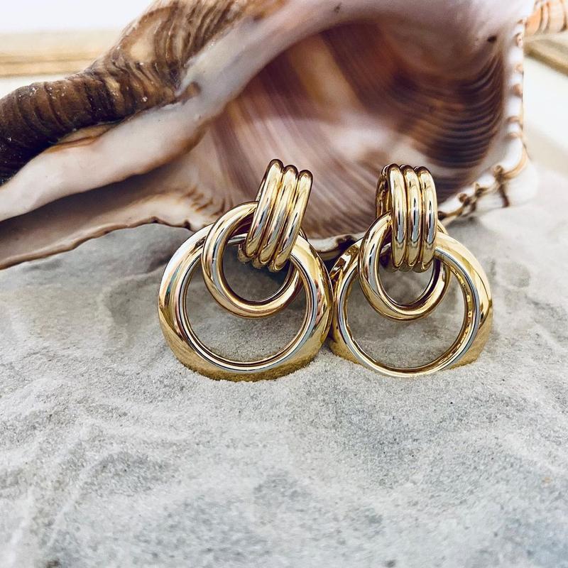 Серьги-гвоздики, которые будут дополнять любой твой образ 🖤🤍 ▫️тип металла: цинковый сплав ◾️цвет: золото ▫️длина: 3 см ◾️ширина: 2,3 см ▫️цена: 135,00 грн