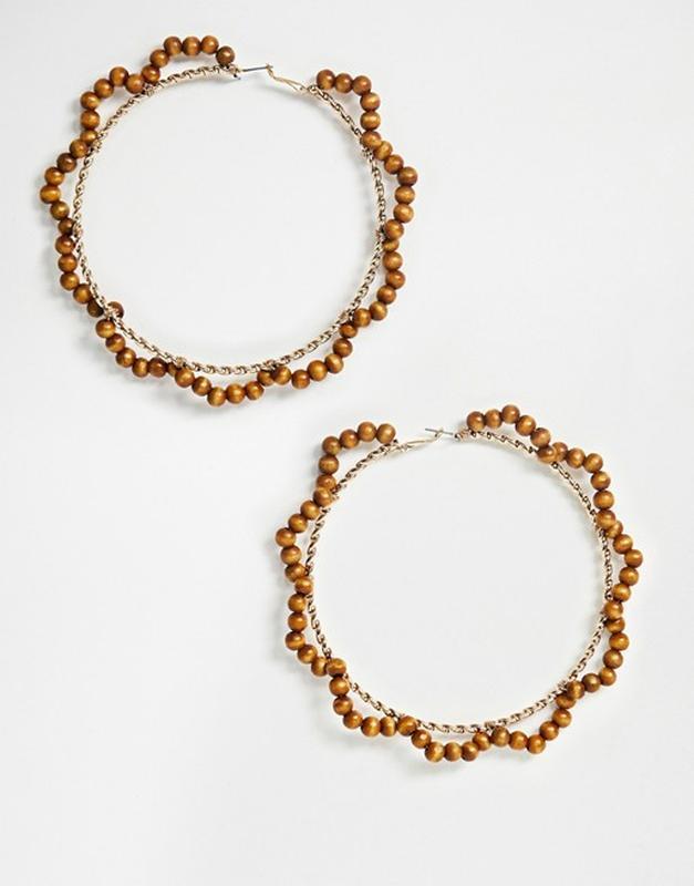 🌳 крупные серьги-кольца с оплеткой из бусин натурального дерева от asos оригинал