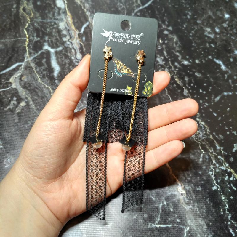 Стильные, элегантные кружевные сережки. Идеально дополнят любой нежный образ. Застежка - гвоздик Фурнитура под золото, бусины - имитация жемчуга. Общая длина - 12 см Ширина кружева - 1,5 см