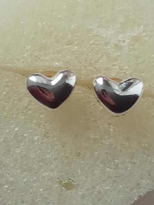 Маленькі срібні сережки-гвоздики "серця" з силіконовими застібками. Англійське стерлінгове срібло 925 проби. Стан ідеальний. Розмір сердець 0,7 х0, 7 см.