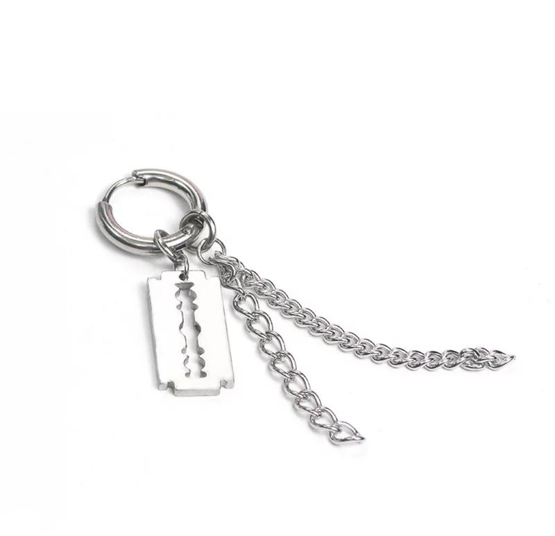 Серьги сережки серёжки серебро панк крест цепи цепочки лезвие подвеска мужская серьга