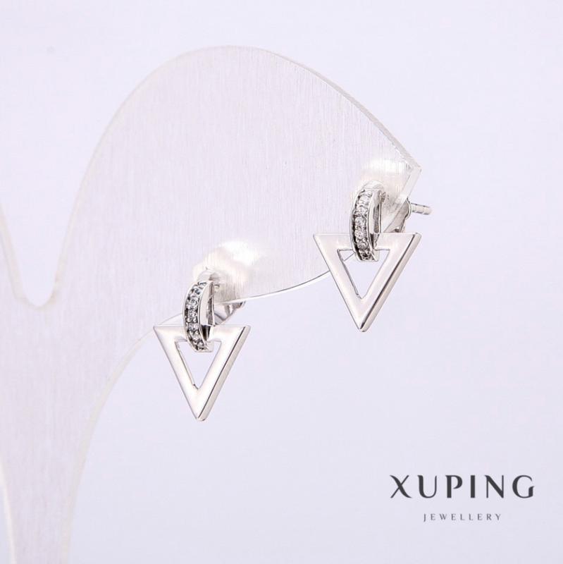 Серьги Xuping с белыми камнями 10х13мм Родий