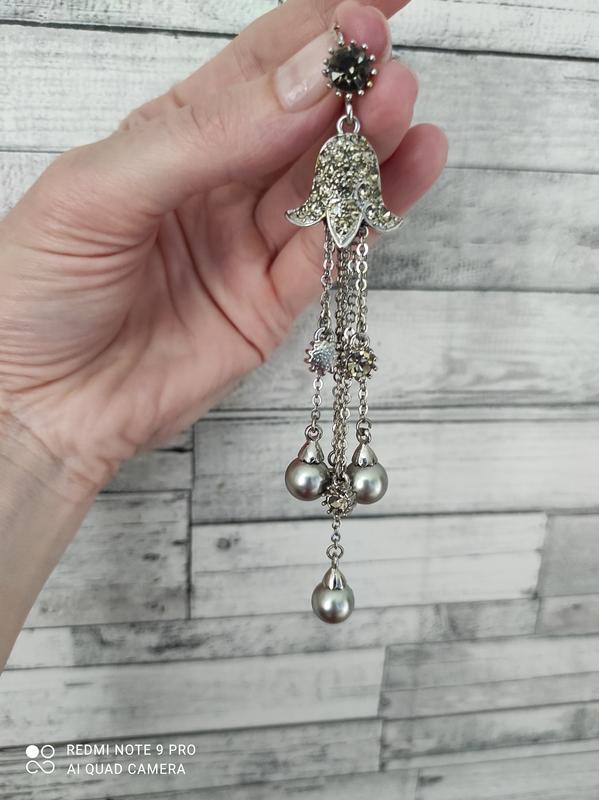 Дуже красиві і ефектні сережки. Колір сталевий. Довжина - 11.5 см Тяжеленькие. З нюансів - останні два фото, і то, якщо дуже сильно придивитися. Пересилаю. На питання відповім додатково!