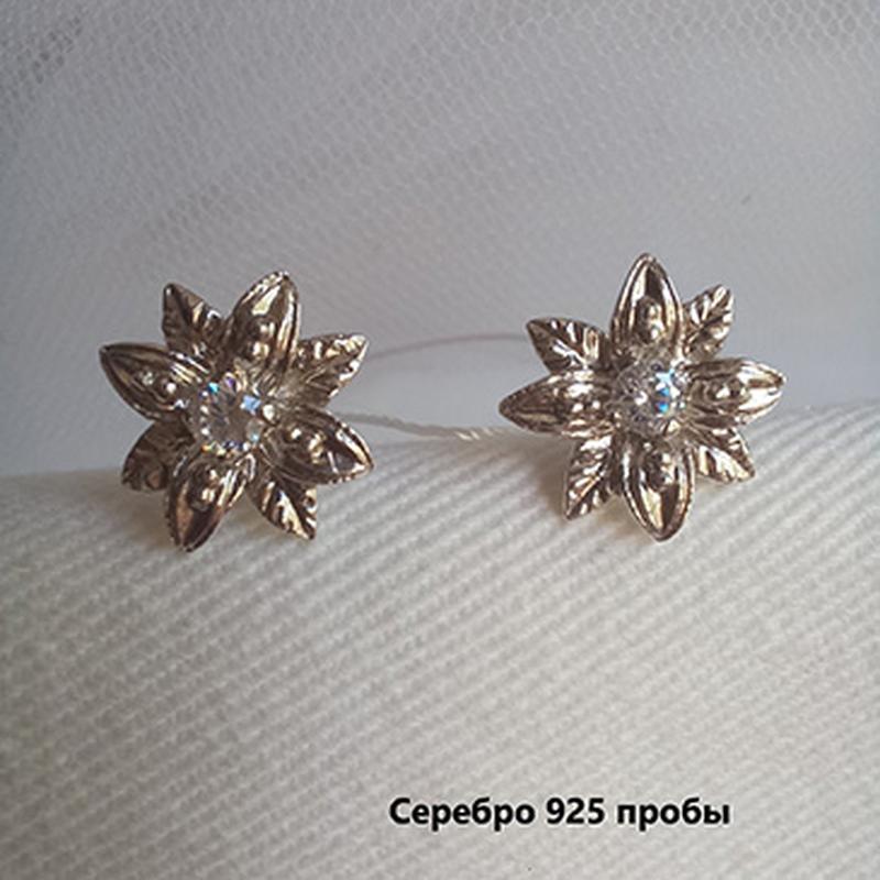 Серебро 925 пробы. Производство: Украина. С пробой и пломбой, сделано из серебра 925 пробы. Сегрги-гвоздики на закрутку "Цветочек" Вес - 2.17 г. Ширина - 1.2 см