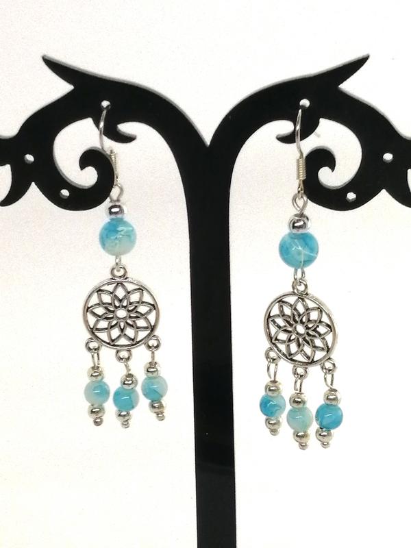 Серьги из стеклянных бусин под натуральный камень с металлическими вставками. Очень нежный. Есть к ним браслет и колье.