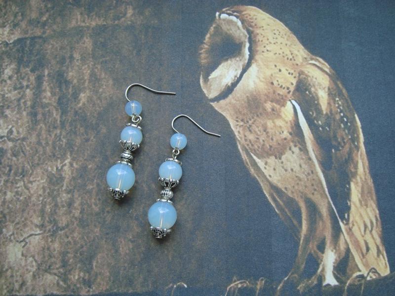 Небольшие серьги из стеклянных бусин под лунный камень, дополненные металлическими бусинами и обнимателями. Очень нарядно смотрятся под любой летний образ.