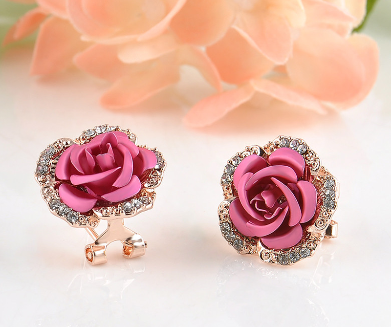 Тип изделия: Серьги-гвоздики Размер : длина 2 см, ширина 2 см Материал : позолота 14 К Цвет : Розовый