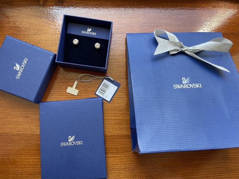 Оригінальні сережки Swarovski. Куплені у Франції. В упаковці, можна на подарунок. Носилися дбайливо і мало. Купувалися за 2800грн Є коробка від серветки, можна купити будь-яку іншу це не проблема Накладеним не відправляю. З обміном не турбувати