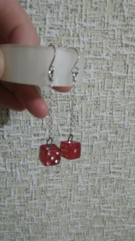 Длинна цепочки 3см,на одной серьге потерялся камушек,при носке не видно.