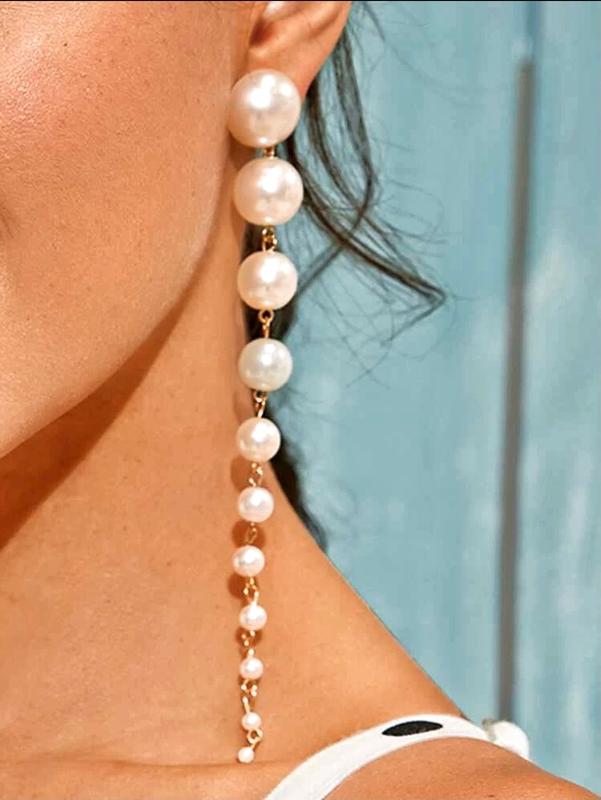 Роскошные длинные серьги с искусственным жемчугом Состав : металл , пластик Размер : длина 14.5 см. Привезено из США 🇺🇸