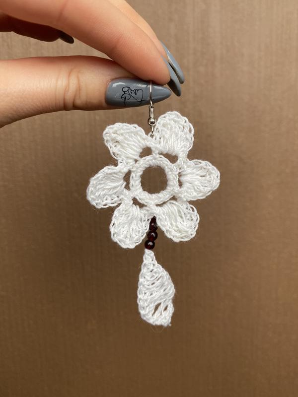 Вязанные серьги ручной работы в стиле бохо.Состав нити 100% хлопок.Длинные,но очень легкие.Невероятно дополнят Ваш образ