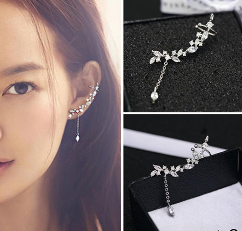 Серьги-каффы на всё ушко с висюлькой из ярких камней, серебряное покрытие 925 пробы, в комплекте 2 шт