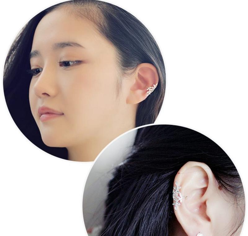 Каффы листья на хрящик 2 шт, серьги без прокола, серебряное покрытие 925 пробы