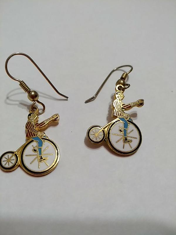 велосипедист. серьги. эмаль.
