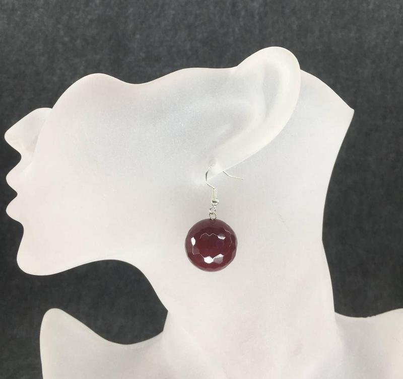 Серьги Агат малиновый граненый шарик (пресс) d-20мм L-37мм