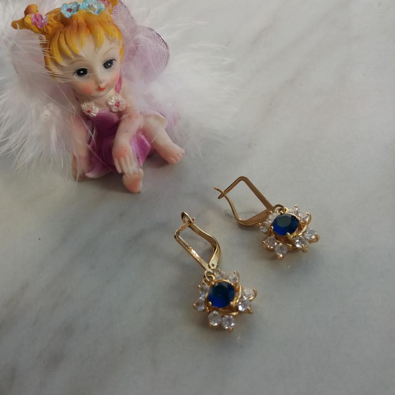 Новые серьги "Цветочки", золотистый металл, стразы. Диаметр цветочка около 1,5 см, общая длина 3 см.
