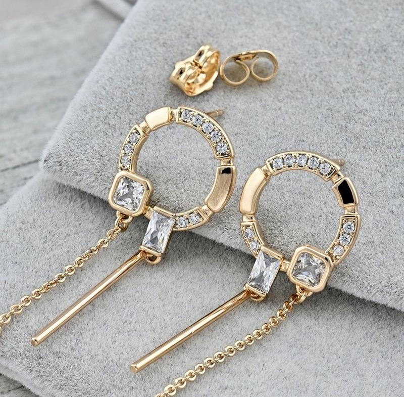 💫 Серьги Бриллиантовый Дуэт 🔻Арт: 37375К 📏размер 72х16 мм 💠белые фианиты ⚖️ вес 4.6 г 💠позолота 18К
