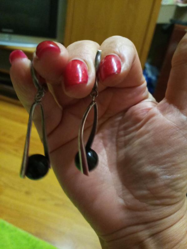 Сережки срібні кульки імітація агата, довжина 5,5 см, діаметр кульки 1 см, довжина гвоздика 1,1 см