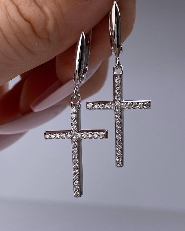 Серьги серебро крестики