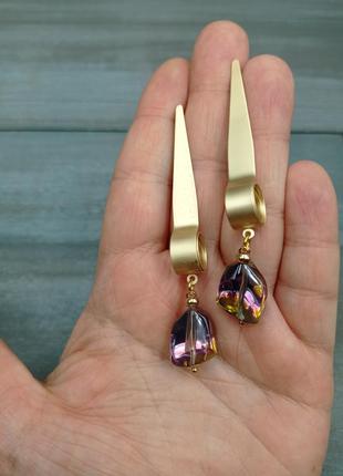 Длинные, нарядные серьги с очень интересными стеклянными бусинами Бусины меняют цвет от синего до фиолетового Очень интересные,оригинальные швензы. Тип швенз: гвоздик с силиконовой заглушкой. Длина сережек: 7 см Смотрите и другие мои объявления. Много красивых и интересных украшений ручной работы