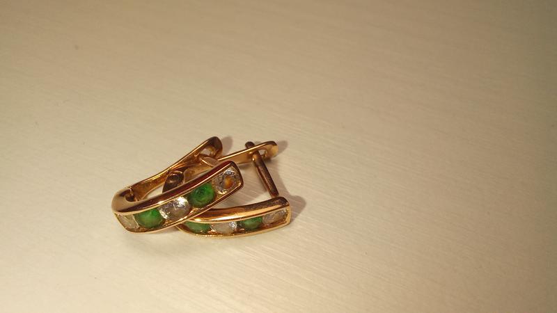 Золото, фианиты. Позиционируются как детские, но приобретались для взрослого :)