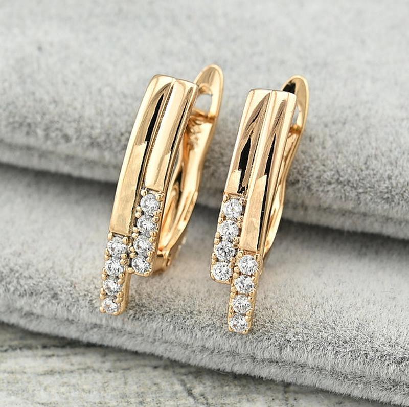 Сережки Канни розмір 18х4 мм білі фіаніти вага 2.5 м позолота 18К.