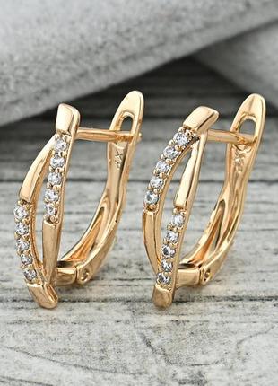 Сережки Алмазна доріжка розмір 17х4 мм білі фіаніти вага 1.7 р позолота 18К. Гипоаллергенно. Позолота не боится воды. Сохраняет цвет и блеск. Позолота 18К - цвет золота 750 пробы.