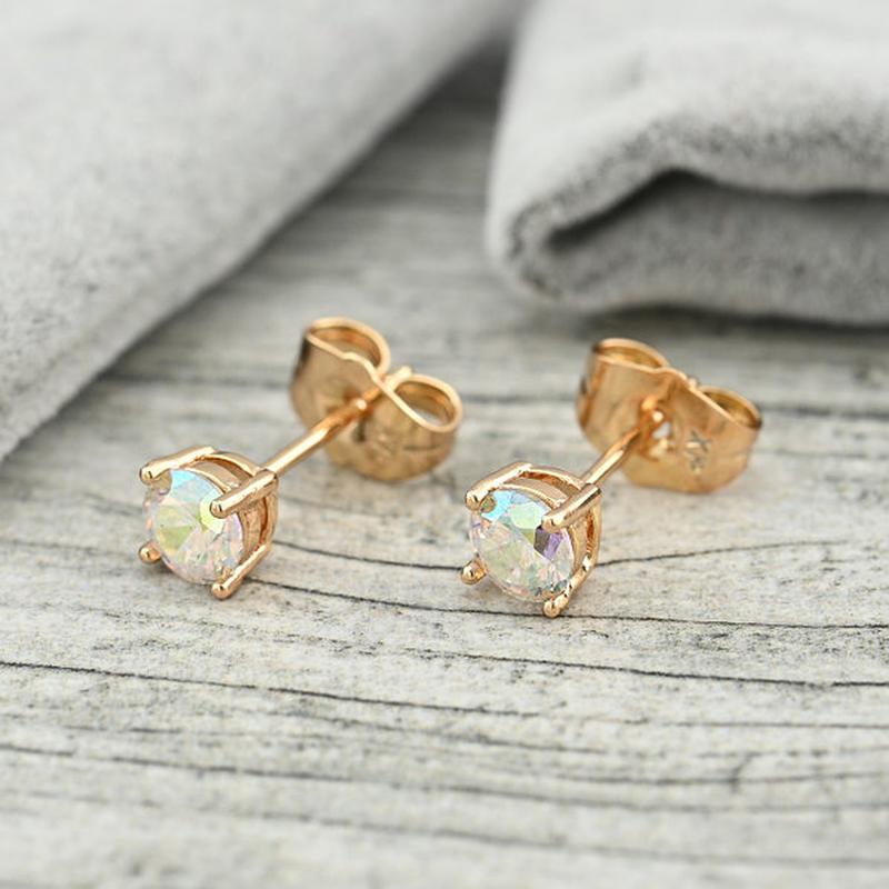 Сережки гвоздики Дженіфер розмір 5х5 мм фіаніти хамелеон вага 1.2 м позолота 18К.