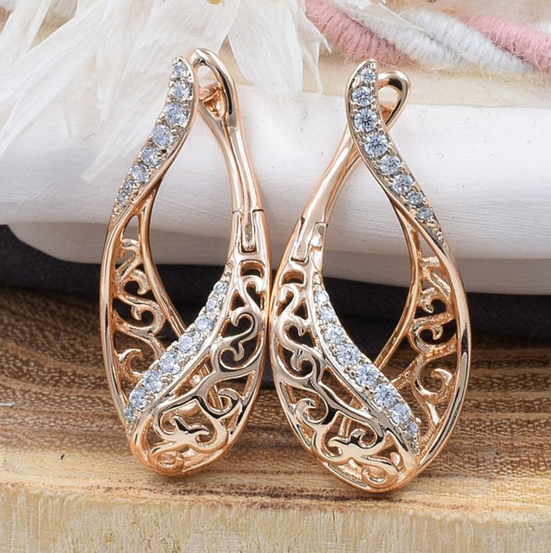 Сережки Xuping розмір 27х14 мм вага 3.3 р білі фіаніти позолота 18К.