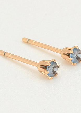 Сережки гвоздики розмір 3х3 мм сині фіаніти вага 0.6 м позолота 18К.