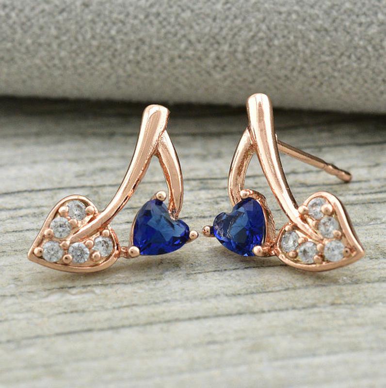 Сережки Xuping гвоздики Версаль РО розмір 15х7 мм сині,білі фіаніти вага 1.5 м позолота РВ.