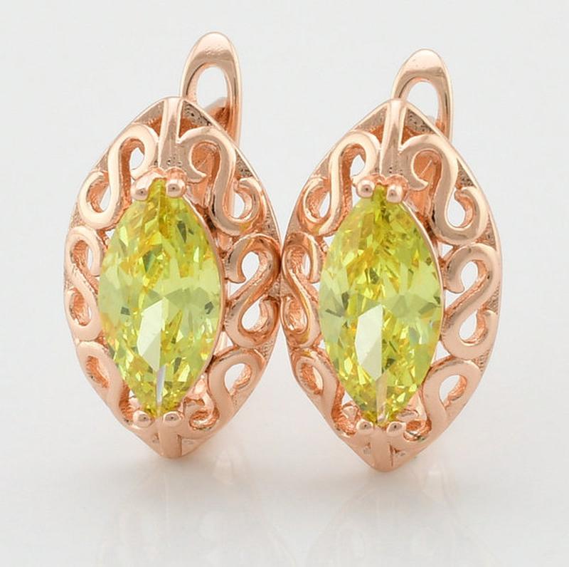 Сережки Xuping Скарб розмір 15х9 мм вага 2.9 р жовті,біліфіаніти позолота РВ.