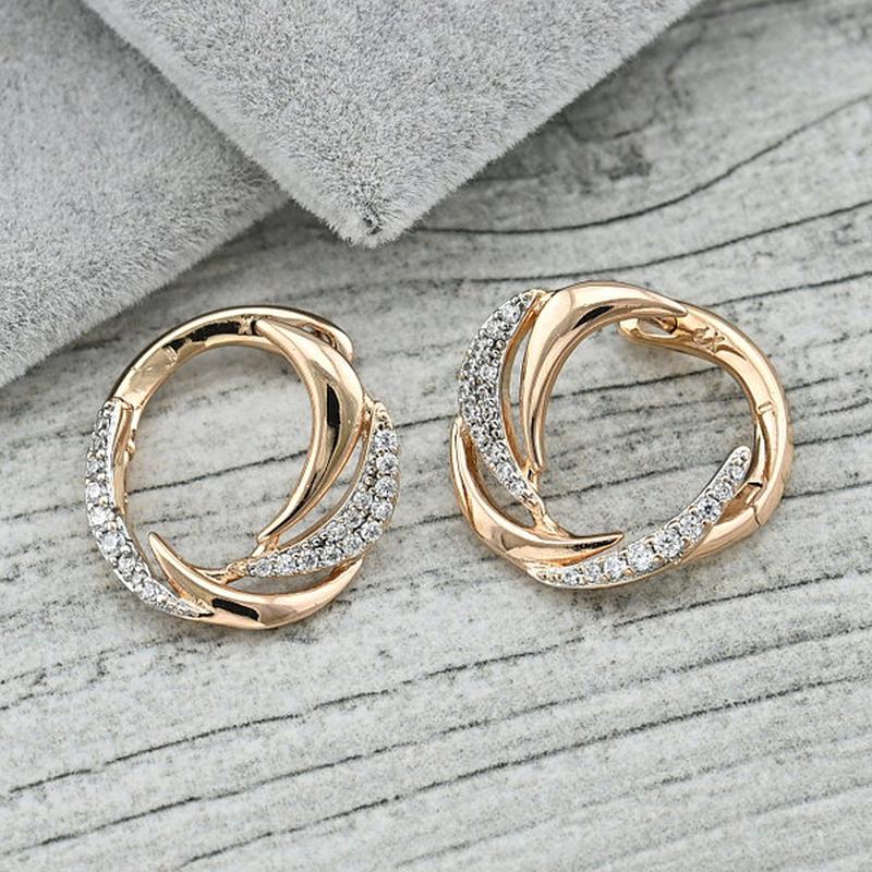 Сережки з родированием розмір 18х18 мм білі фіаніти вага 2.9 р позолота 18К.