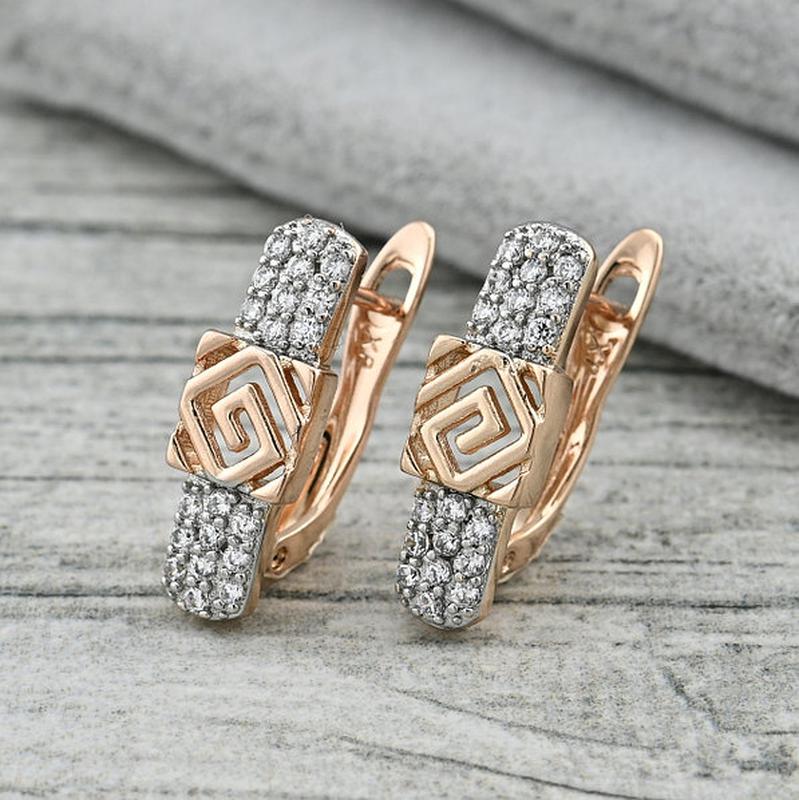 Сережки з родированием розмір 18х6 мм вага 2.5 м білі фіаніти позолота 18К.