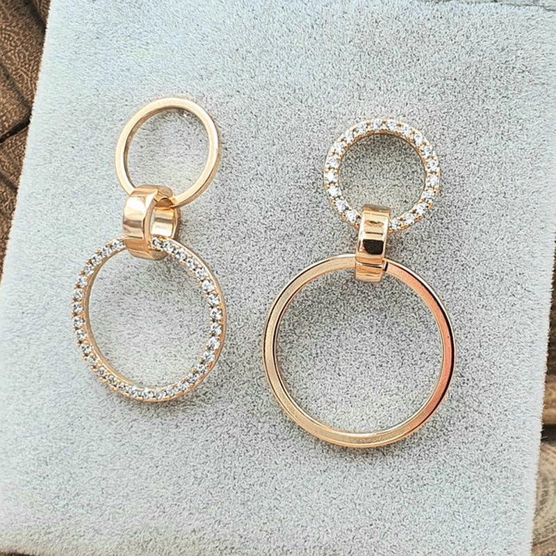 Сережки підвіски розмір 34х20 мм білі фіаніти вага 4.3 р позолота 18К.