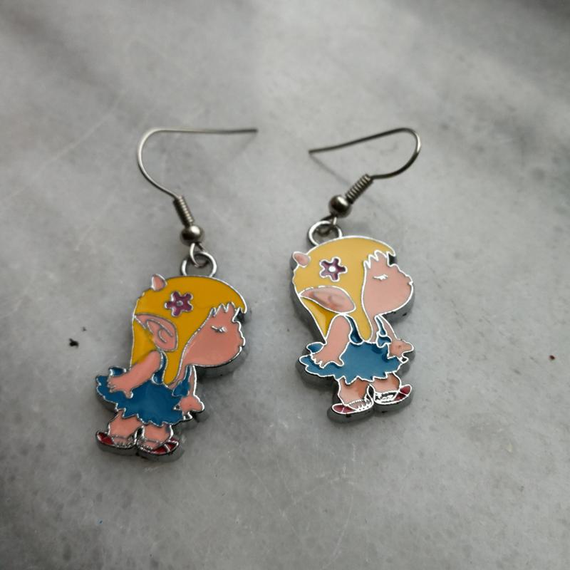 Серьги эмаль висюльками девочка эльф