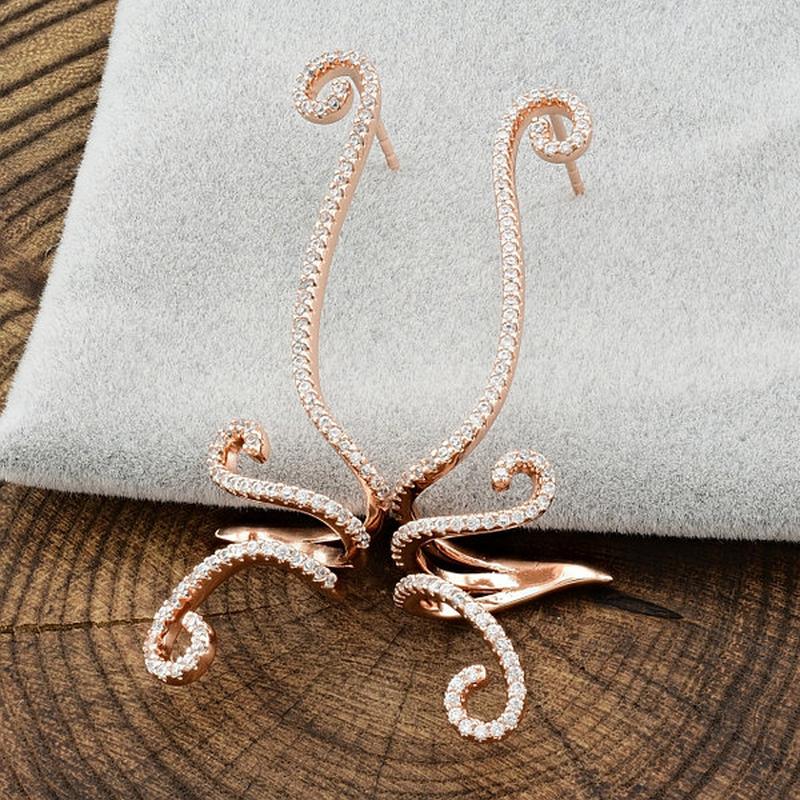 Сережки Xuping розмір 51х16 мм білі фіаніти вага 5.3 р позолота РВ.