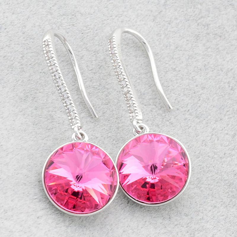 Сережки Xuping з кристалами Swarovski розмір 30х13 мм колір рожевий позолота Біле Золото.