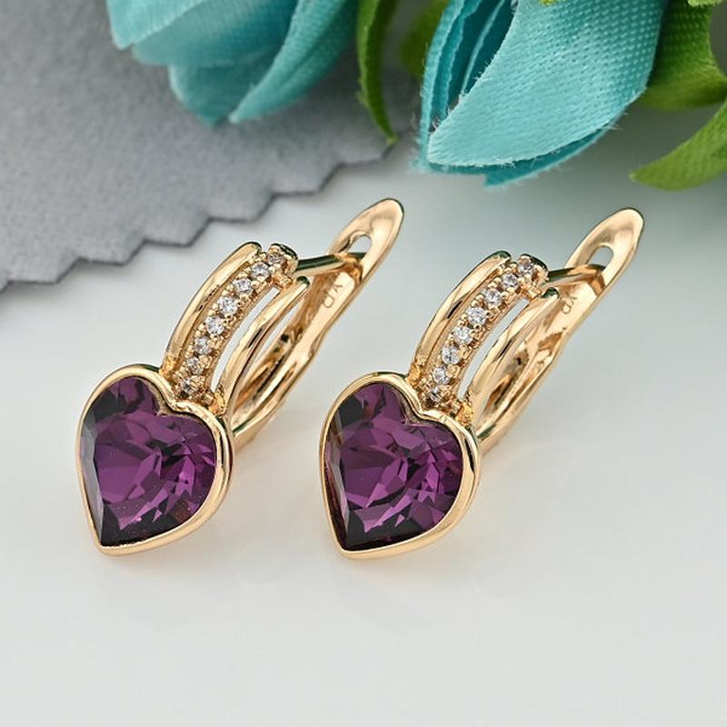 Сережки Xuping з кристалами Swarovski 21411 розмір 19х9 мм колір аметистовий вага 3.5 г позолота 18К.