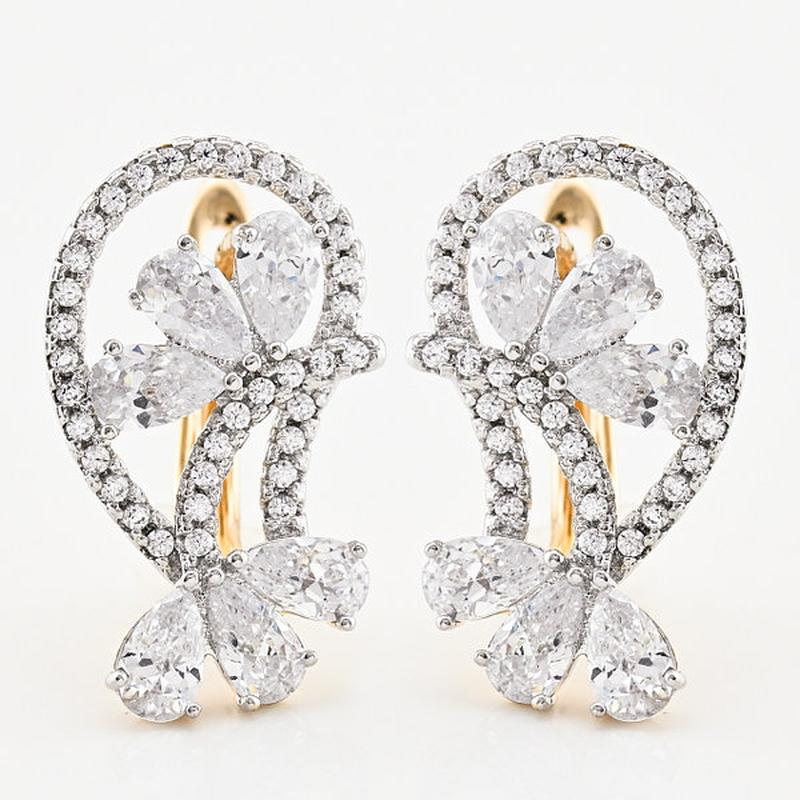 Сережки Xuping розмір 21х12 мм білі фіаніти вага 3.6 м з родированием позолота 18К.