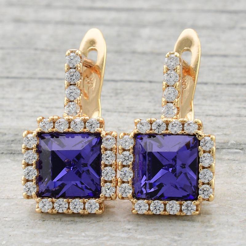 Сережки Xuping з кристалами Swarovski розмір 16х9 мм колір фіолетовий позолота 18К.